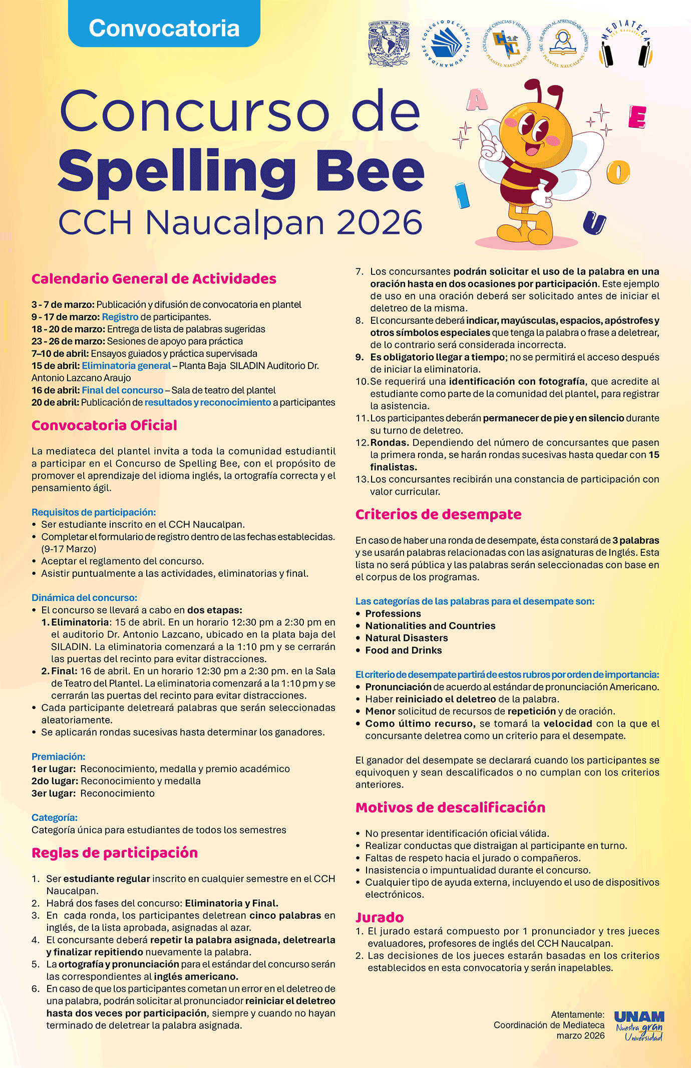 CONCURSO DE SPELLING INTER CCH: SPELLING BEE